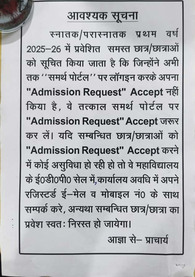 नगर-निकाय चुनाव में लगे कर्मचारियों के प्रशिक्षण के कारण दिनांक 17 नवम्बर,2017 को महाविद्यालय में शिक्षण कार्य स्थगित रहेगा। अन्य आवश्यक कार्य यथावत होते रहेंगे।